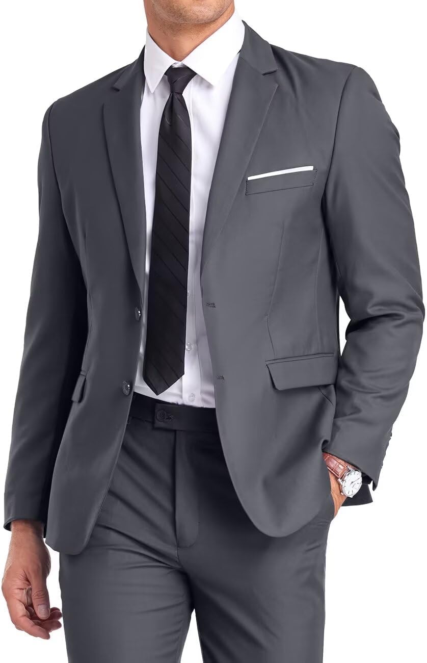 Mens Suit Slim Fit 2 Piece Suits,Two Button Solid Business Wedding Tuxedo Suit for Prom Suit Jacket and Pants